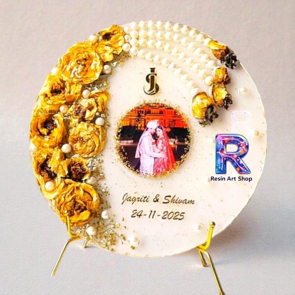 Get your wedding varmala preservation in epoxy resin and wooden frame for lifelong. We preserve your varmala after processing your varmala flowers so that they retain their color and shape lifelong. Create a perfect memory by preserving your marriage varmala in high quality and shiny resin packed in teakwood or pinewood frame. Lots of sizes available with us. You can chose options and get customized as per your choice and design. Add your Kaleera, Wedding Card, Mala, Moti, Pearls, Choora and other special things in resin for preservation.